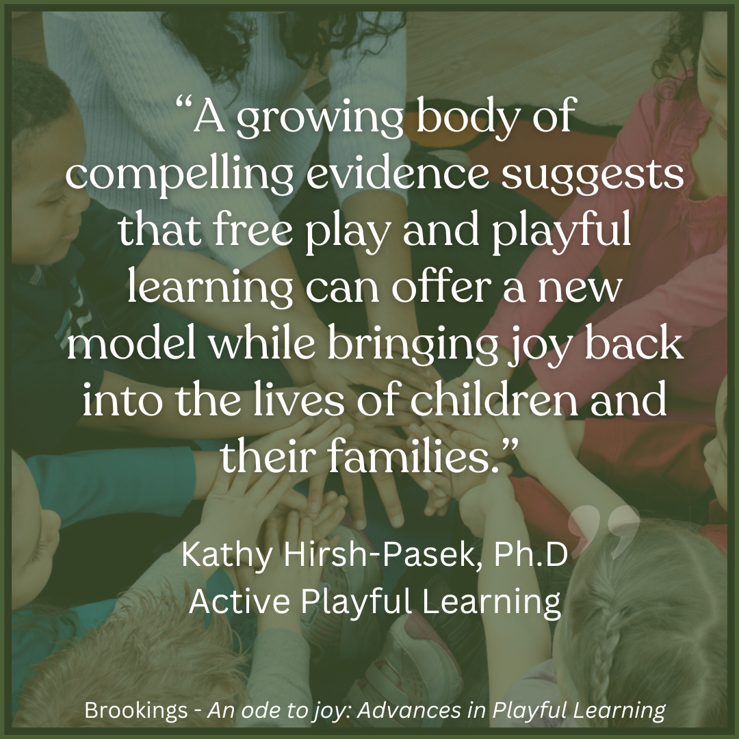 Across the country, momentum for play-based learning is growing. Three states have already passed laws supporting playful learning in elementary classrooms (Brookings, New America).